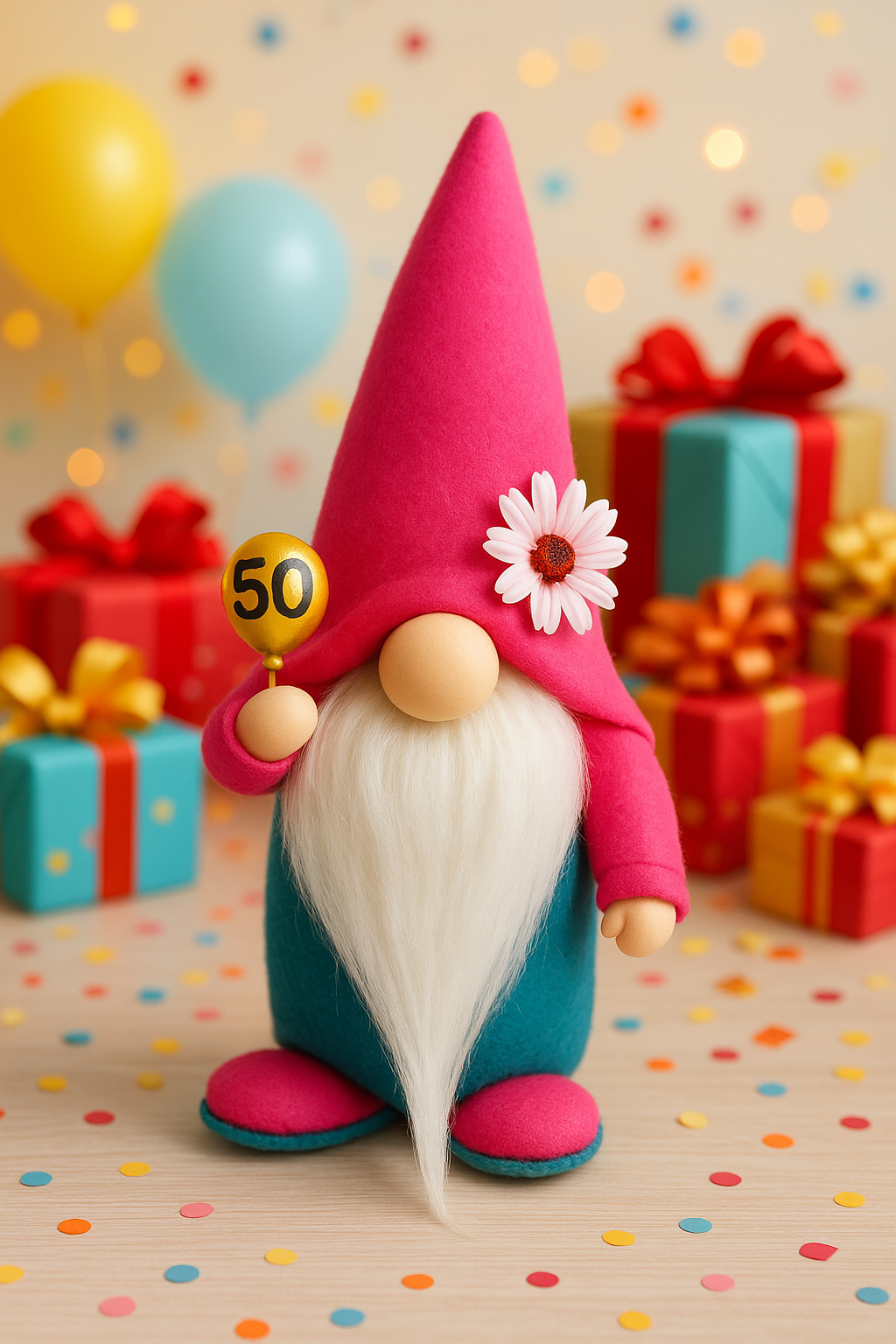 Handmade Birthday Gnome with Balloons and Age, Gonk, Nordic, Swedish Tomte